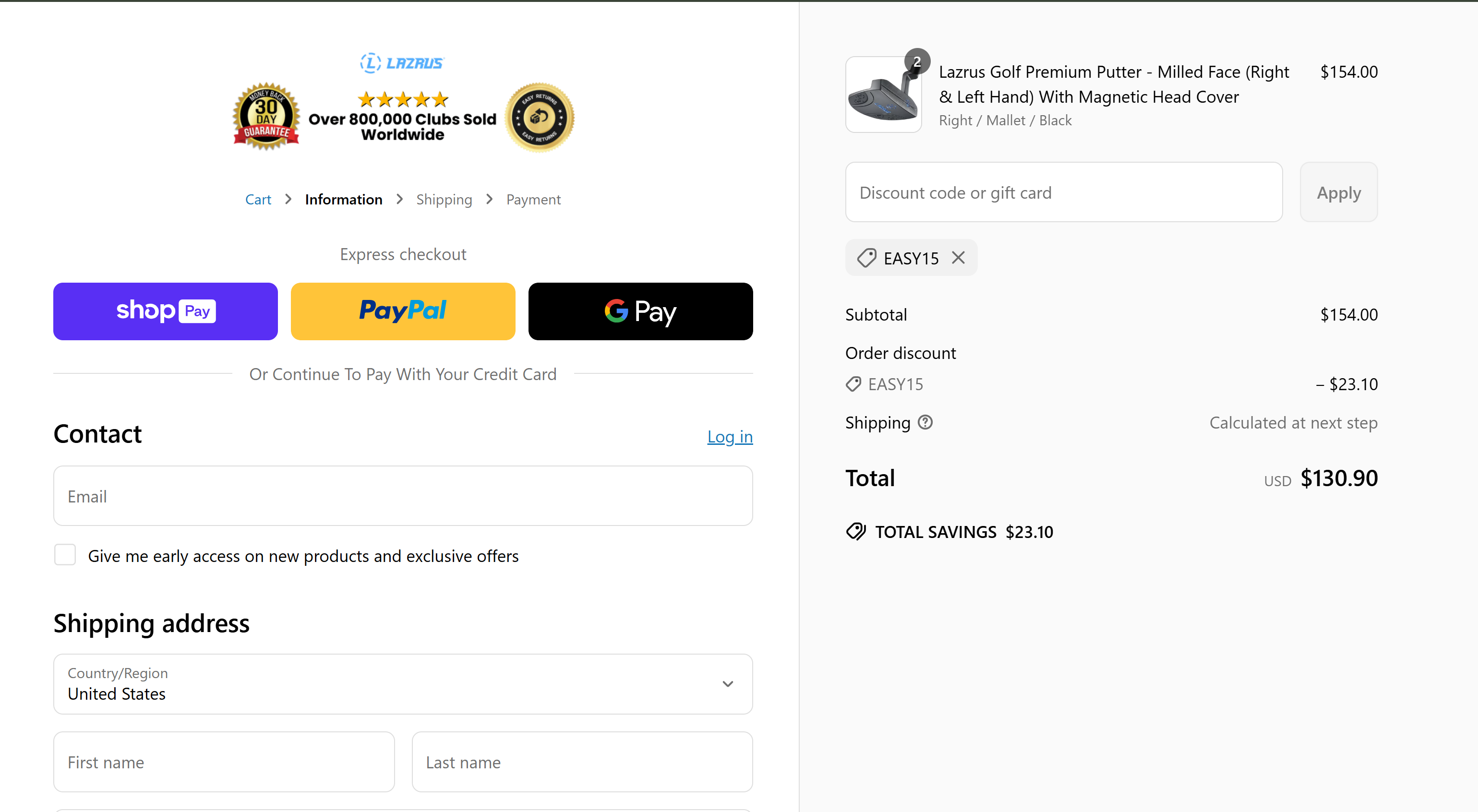 Save big on top-quality golf gear at LAZRUS with $10 off today!